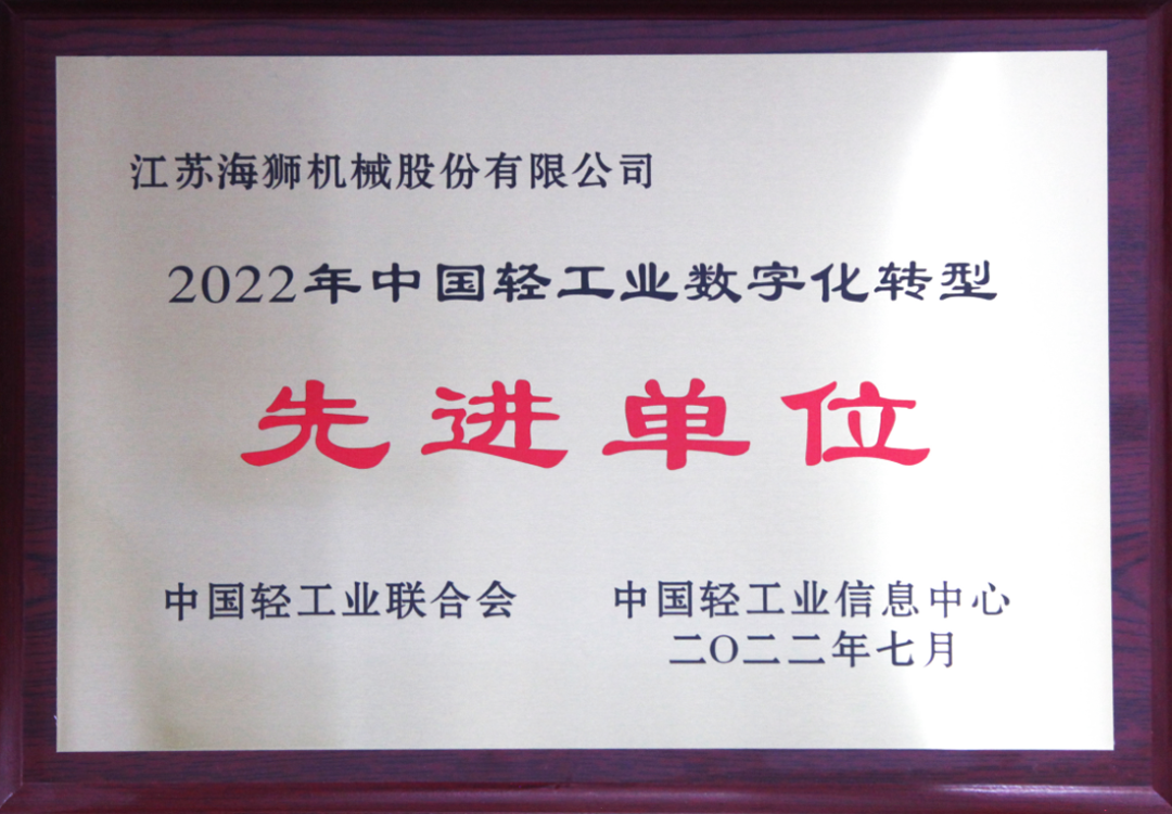 会上,乐动在线登录荣获“2022年中国轻工业数字化转型先进单位”表彰。江苏海狮机械陈宏董事长荣获"2022年中国轻工业数字化转型领军人物。”