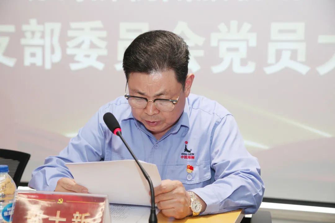 本次选举大会在庄严的国歌声中拉开帷幕,会议由海狮党总支书记、总经理邬士新主持,大会严格按照换届程序,审议通过了各项议程。
