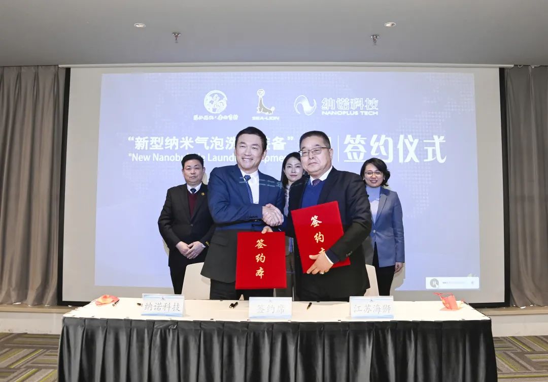 由吕鸿图院士领导的纳诺科技,长期致力于环保与节能减排事业,多项洁净技术走在科技前沿;江苏海狮是中国公共纺织品洗涤设备开创企业,第一批国家级“专精特新”小巨人企业、国家级高新技术企业,也是我国洗涤装备行业的领军企业,海狮致力于节能减排与数字化智能化技术推广,海狮在洗涤装备领域的专利等知识产权拥有量遥居行业首位。
