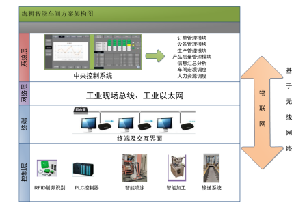 海狮智能焊接车间工业互联网主要包括生产管理网络、自动控制网络、工业电视监控网络和无线对讲通信网络,通过上述网络的互联互通,实现整个生产过程中,信息沟通及时、高效,提高整个车间生产效率。