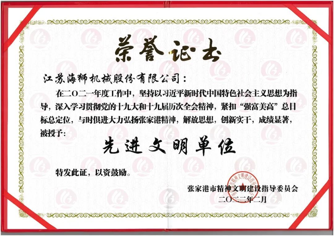 江苏海狮机械荣获张家港市“两业融合”优秀试点企业