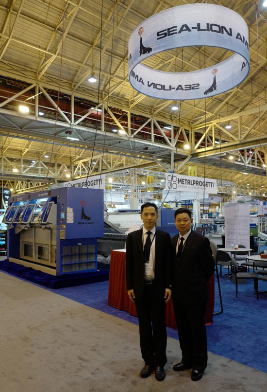 当日,乐动在线登录由公司总经理邬士新、公司常务副总经理张建丰带队,展出了XGQ-100CFQ全自动洗脱机、ZD3300-VB高速折叠机、ZBQ3300-III三工位展布机。
