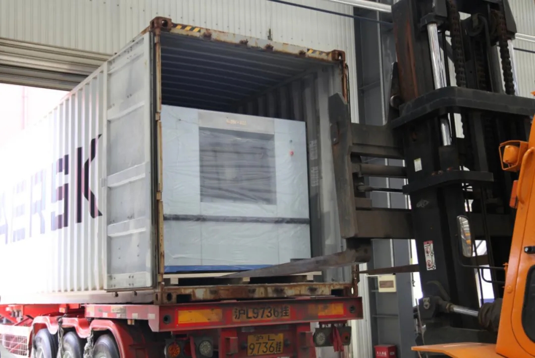 图为海狮发往印度尼西亚、新西兰等国的洗涤设备,其中包含医用隔离式洗衣机。