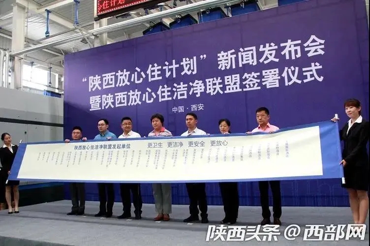 5月19日,由陕西省饭店协会、陕西省洗染行业协会联合推出“陕西省放心住计划”暨陕西放心住洁净联盟签署仪式在西咸新区秦汉新城租洗一体化智能工厂内举行。此次“计划”将陕西停用并回收疫情期间价值500万元的布草,首批投放2万套全新抑菌智能布草进行更新换代,后期还将根据市场需求陆续投放第二批、第三批抑菌智能布草,最