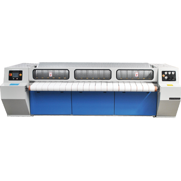 采用单电机驱动,功耗低,变频调速系统,可根据蒸汽温度高低,布草种类,含水率等工况进行8-40米/分钟的熨平速度任意调节。